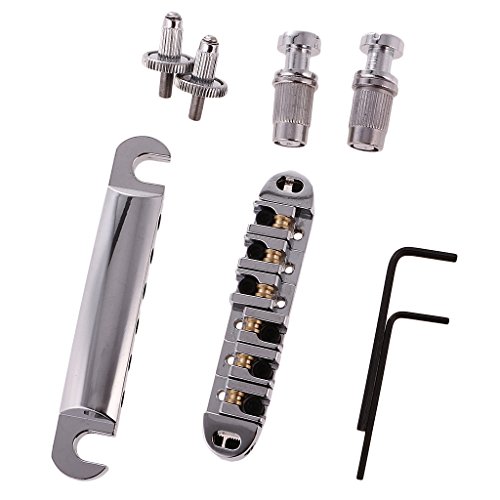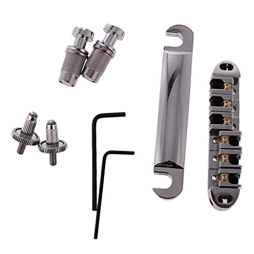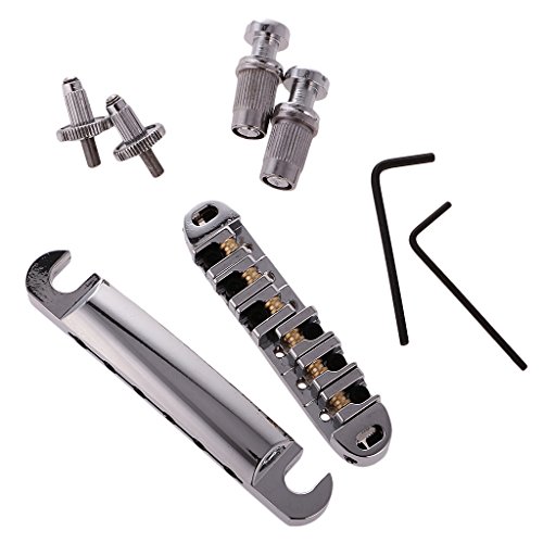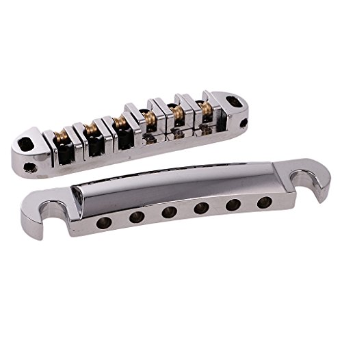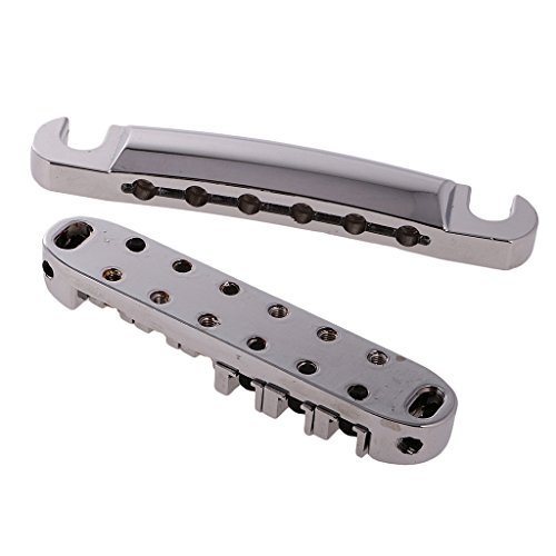 Description: Material:Metal Bridge Size: 84.5 x 17mm / 3.33 x 0.67 inch Tailpiece Size: 100 x 17mm / 3.93 x 0.67 inch String Spacing: 10.3 mm / 0.41 inch Item's color might be different from the picture because of the aberration. Fully adjustable saddles for harmonics with smooth working rollers,complete with locking posts and allen key. Super for increased tuning stability when you're using a Bigsby-but also often cure for string breakages.