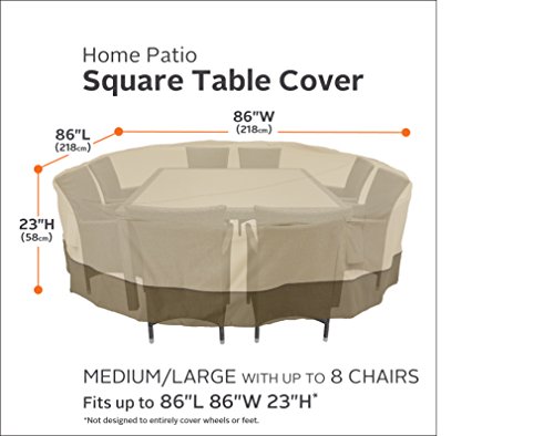 Classic Accessories Veranda Square Patio Table & Chair Set Cover for 8-Chairs - Durable and Water-Resistant Patio Furniture Cover, Medium-Large (55-701-011501-00)