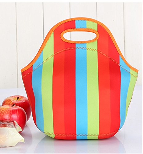 Colorful Stripe Lunch Bags Insulated Lunchbox Tote Handbag Cooler Warm Pouch For Women Teens Girls Kids Adults