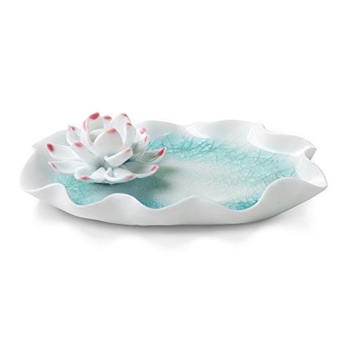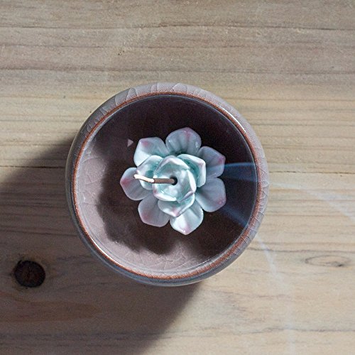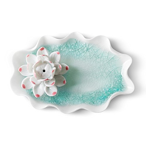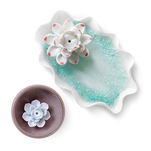 UINSOO Ceramic Lotus Stick Incense Artistic Burner Holder with Single-Hole Incense bowl (Handmade) (cyan) ,pack of 2