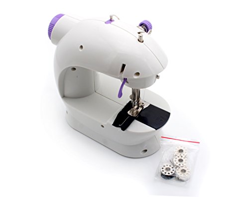 -. Feature : Mini Sewing Machine / Mini 2-speed sewing machine offers double thread and perfect stitch control / Mini and Portable, Great for your DIY work anywhere. / Package: 1 x Mini Sewing Machine , 4 x Bobbin, 1 x Foot pedal, 1 x Needle, 1 x Threader, 1 x User Manual. / 30 Days Money Back Guarantee