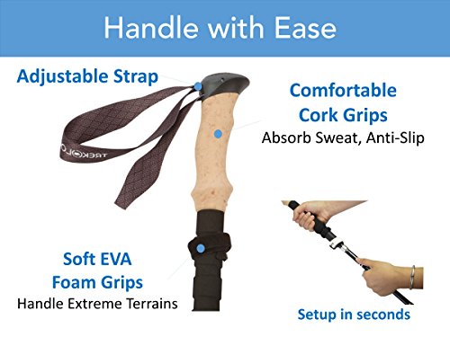These Trek-Z Trekology Trekking Poles combine strong aluminum construction, soft wrist straps with moisture-wicking cork handles to create a comfortable all-day hiking experience. They are both stylish and sturdy, perfect for day hikes or longer treks. Trekking poles can reduce the impact to ankles and knees by as much as 30%. Whether hiking for a day or a week, this pair will help your endurance and balance. Grab a pair today and hit the trail tomorrow! Features: *Made from durable 100% aircraft grade 7075 aluminum great for all types of outdoor adventures including hiking, snowshoeing or a leisurely walk. *Flip locks for easy adjustability *Strong Carbide Tip *Natural cork grips for sweat absorption 0 |