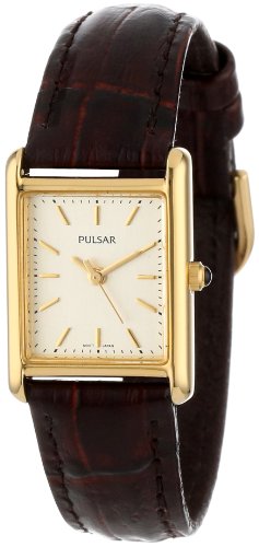 -. Title : Pulsar Women's PTC386 Gold-Tone Brown Leather Strap Watch