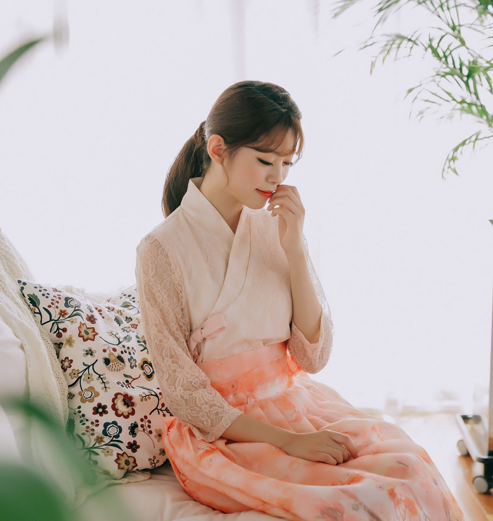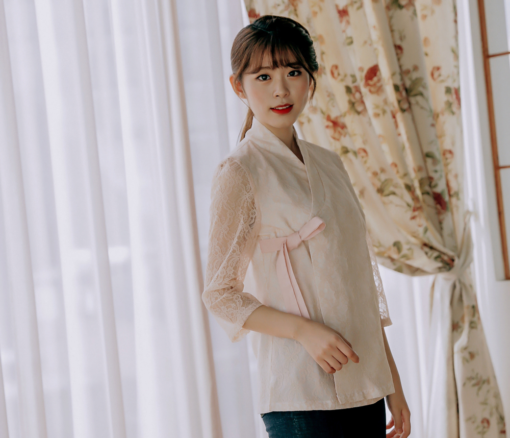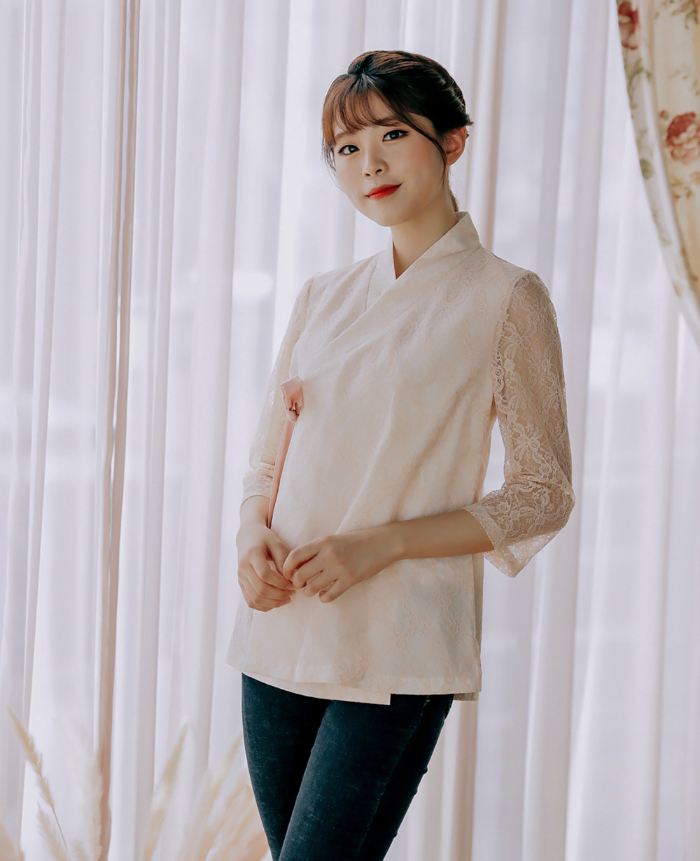 여성스러움이 가득 담긴 살구컬러의 레이스블라우스 저고리를 소개해드려요