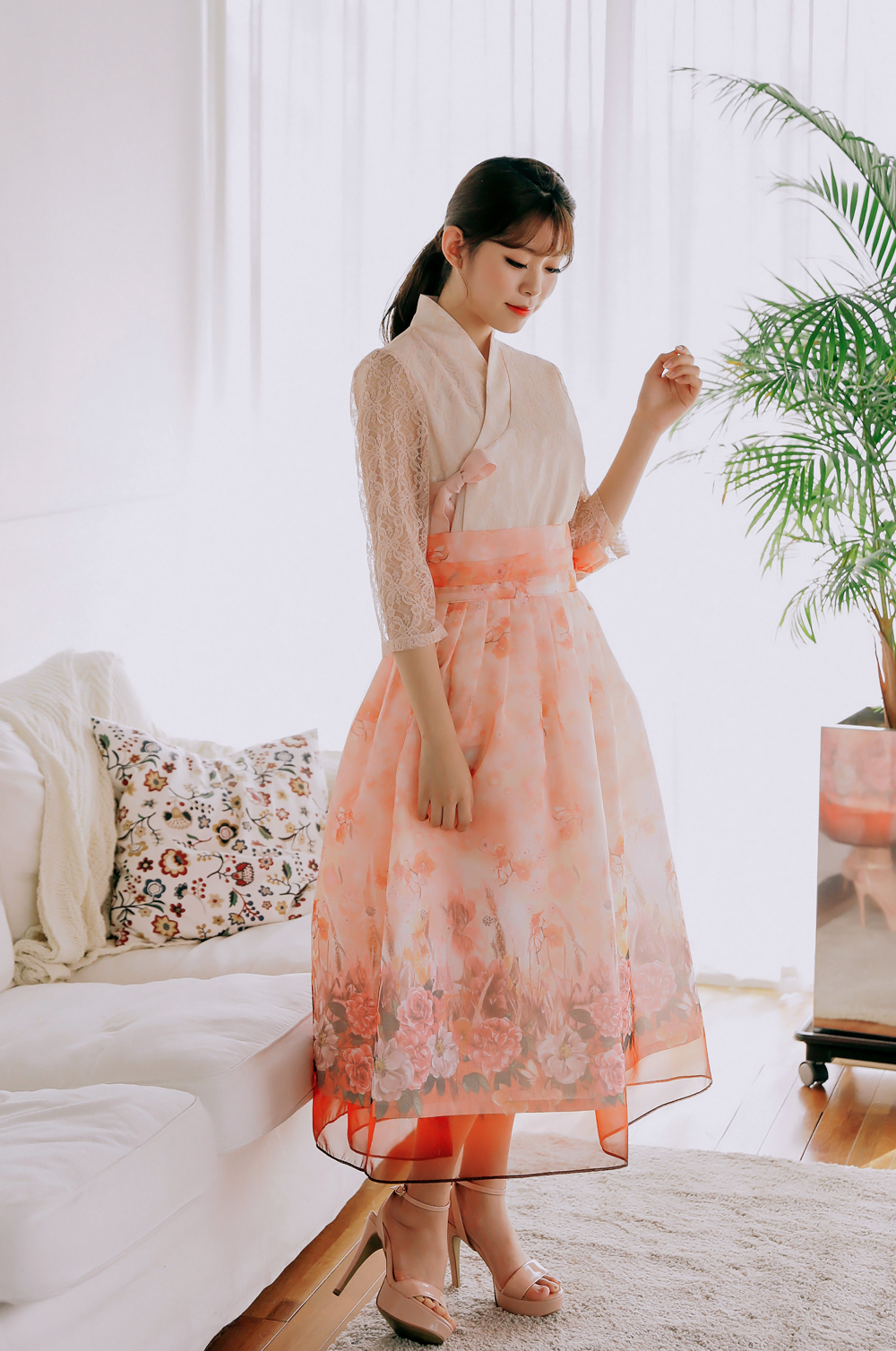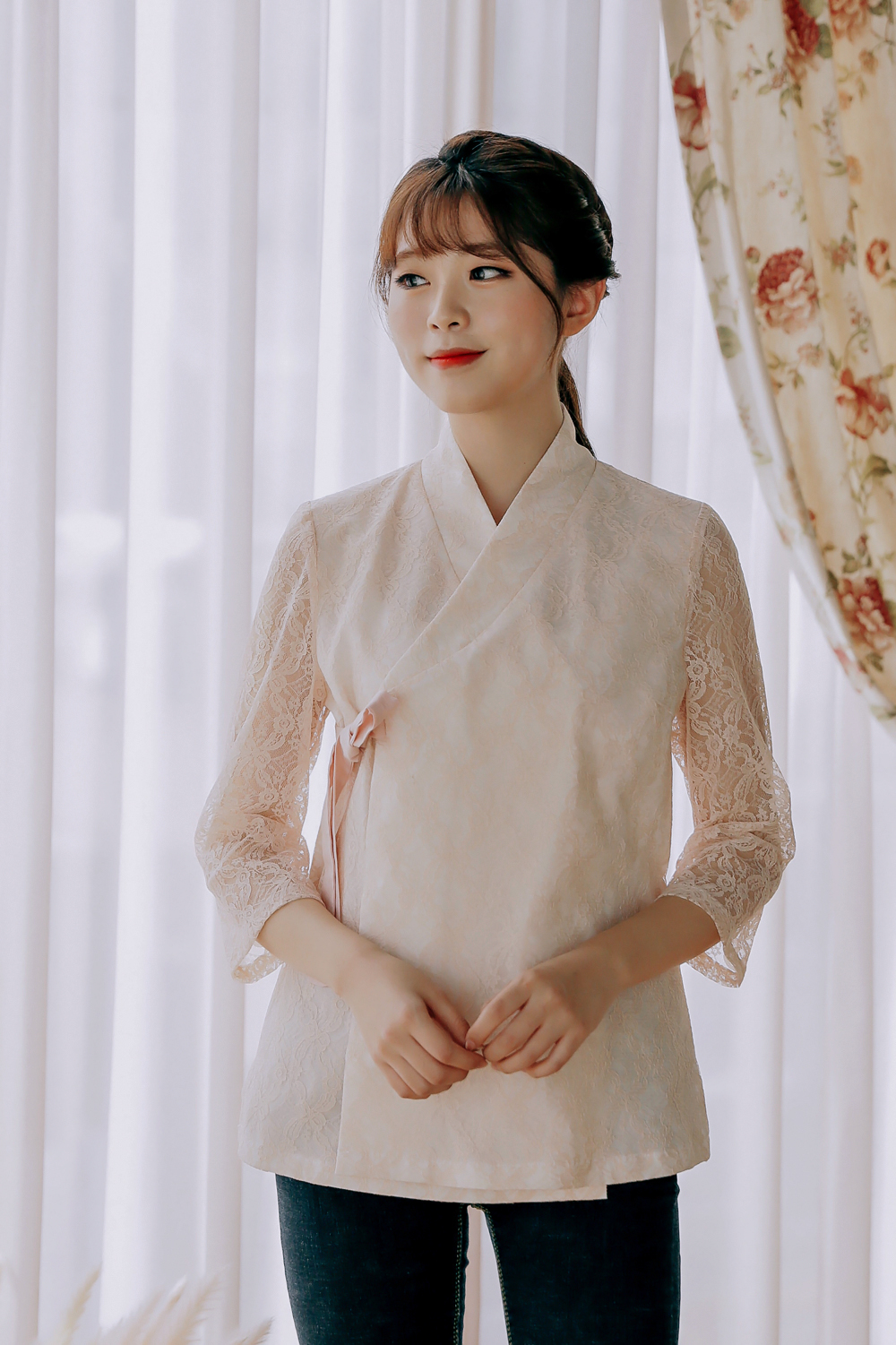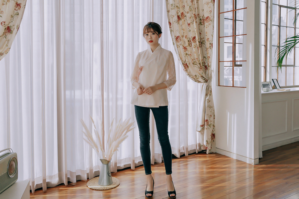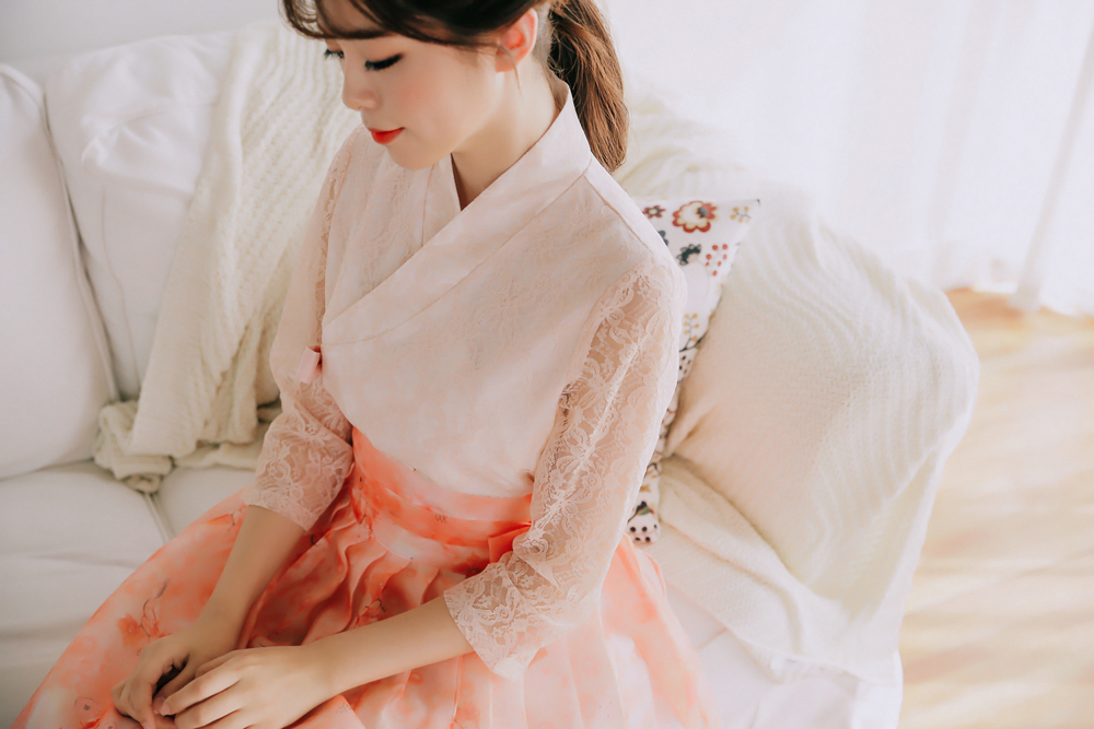여성스러움이 가득 담긴 살구컬러의 레이스블라우스 저고리를 소개해드려요