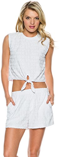-. Feature : Light, summer-weight terrycloth muscle tee / Featuring textured signature lettering and a vintage style front tie / Crafted from a blend of 75% cotton and 25% polyester / Imported
