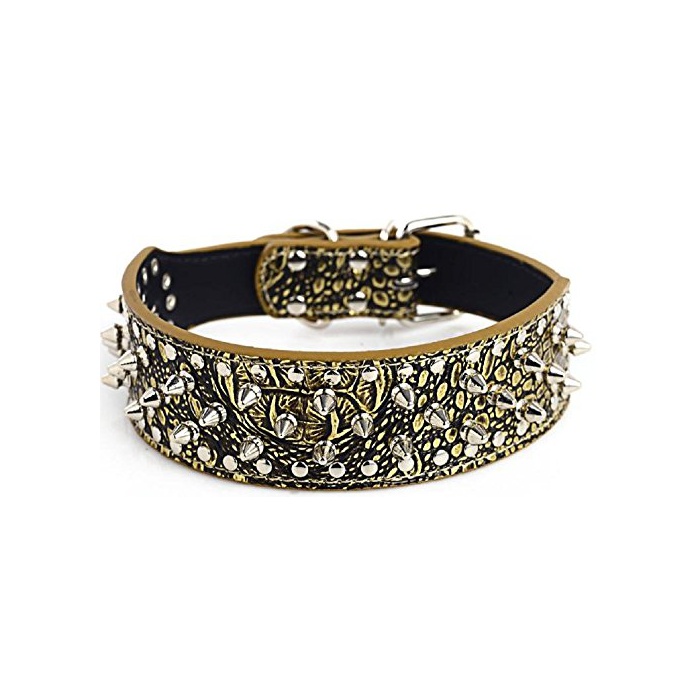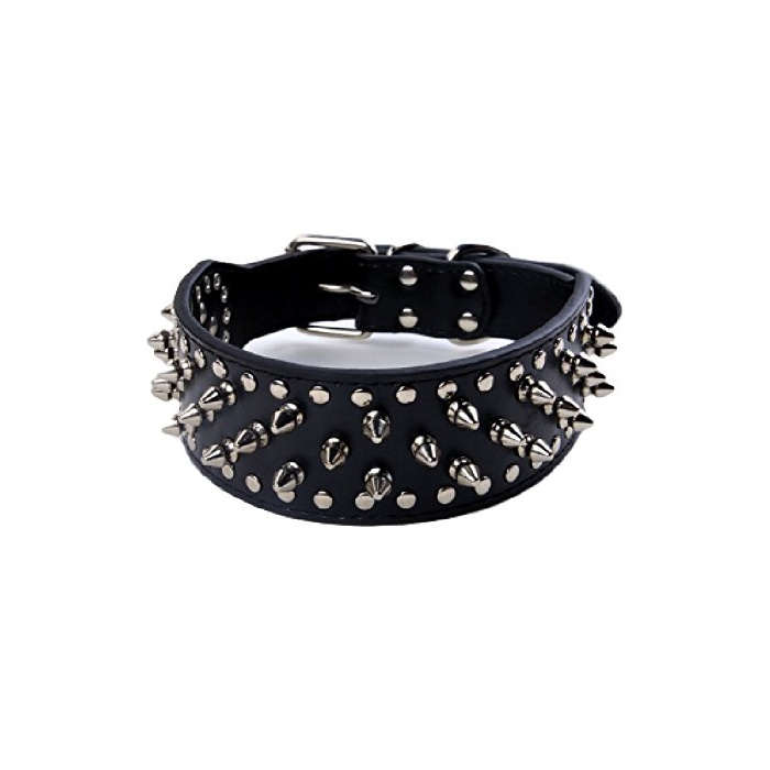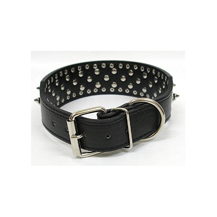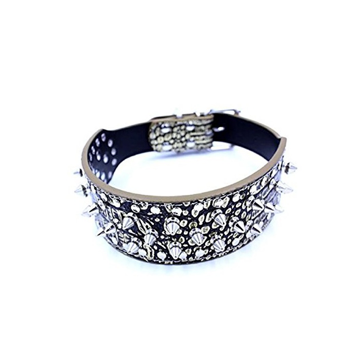 원본상품명:トゲ スパイク 犬 用 首輪 大型犬 中型犬 犬 用 本 革 製 シルバ? スタッズ スパイク リベット 3列タイプ 簡? ?着 愛 犬