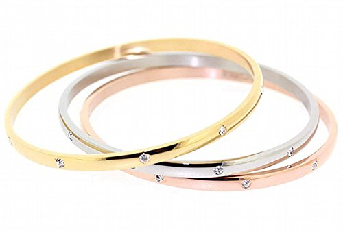 Stainless Steel Set of 3 Multiple Colored Crystal CZ accented Station Bangles. Stainless steel multi strand bracelets for women. A perfect touch for stacking, to be stacked, and are 100% stackable!. Add a sparkling accent with this set of three bangles. The highly polished stainless steel bangles flaunt glistening crystal stations.The Highest Quality in Craftsmanship Handcrafting a Highly Polished -ALWAYS APPEARING LIKE THE PRODUCT JUST CAME OUT OF THE BOX. ALL EDFORCE PRODUCTS WILL NEVER TARNISH DUE TO OUR STATE OF THE ART ELECTROPLATING MANUFACTURING FACTORY. Our Stainless-Steel Jewelry will not fade, tarnish, or ever need polishing. From thin to thick, Edforce Stainless-Steel's handcrafted products ensure the utmost quality. All products are durable and well extremely well equipped for everyday use: they will NEVER appear Tarnished or WORN OUT. All products will last a lifetime when properly cared for. We stand behind every product with a 100% Satisfaction Guarantee.