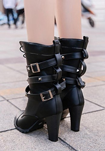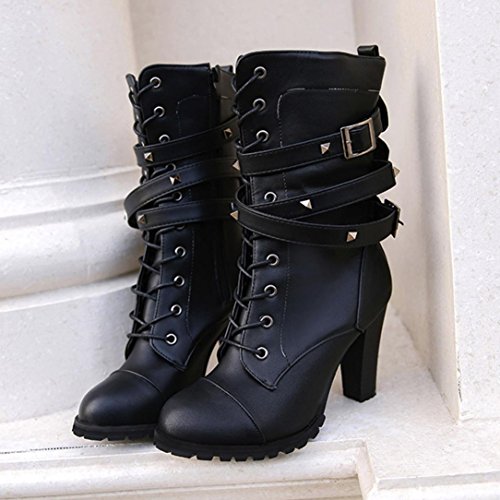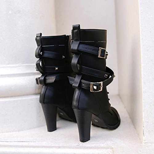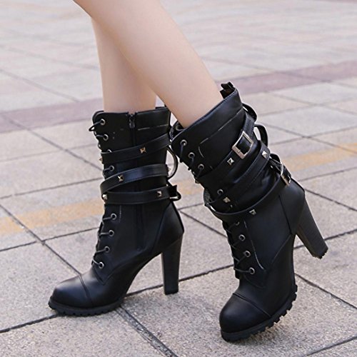 -. Title : Victorcn Ladies Long Buckle Belt Faux Warm High Heels Martin Shoes