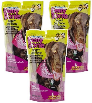 -. Title : (3 Pack) Fido Belly Dog Bone, Digestion Aid w/ Prebiotic and Probiotic Enzymes, Large, 4 Treats each