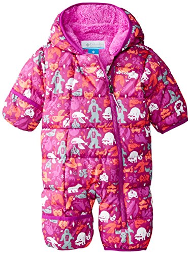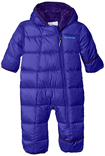 The Columbia infant boys' frosty freeze bunting brings new meaning to the word cozy with its head-to-toe insulation. The 150g synthetic fill provides ample warmth for winter's coldest days, and with fold-over hands and feet, as well as an insulated hood not a bit of heat will be lost when you're little one wrapped in this cozy cocoon. A soft fleece lining is soft against the skin, and the diagonal neck to knee zip makes diaper changes just about as easy as they can be so long as you avoid a blowout.Feature