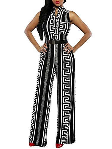 -. Binding : Apparel -. Brand : PlayWorld -. Department : womens -. Feature : Material: Cotton+Polyester / Stretchy and soft material / Loose Wide Leg / Button closure/Come with belt too / Occasion: Night Club, Cocktail, Summer&Autumn, Party and Casual wear -. ProductGroup : Apparel -. ProductTypeName : PANTS -. Title : PlayWorld Women's Sleeveless Geometric Long Wide Leg Pants Jumpsuits Rompers