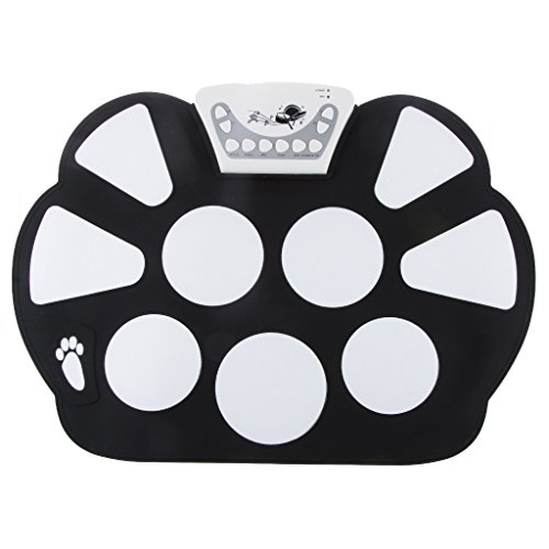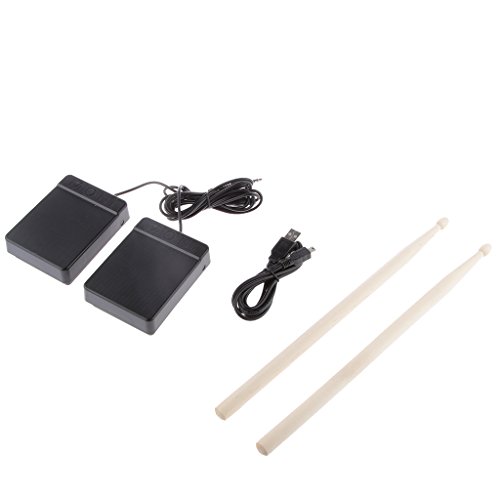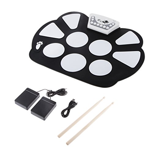 Description: Portable, fashionable, concise High quality drum sound inside, natural and powerful Power supply by USB, DC 5V or AAA battery (1.5v x 2 pcs) Record function, adjustable tempo, adjustable style, etc Drum kit comes with foot plate and drumsticks( battery is not included)