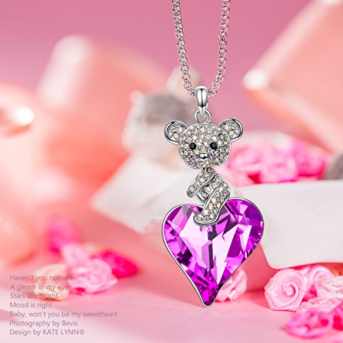 ✿Melt Her Heart✿ ♥Melt her heart with this rose pink sweetheart bear necklace.♥ Featuring a stunning heart-shaped violet Swarovski crystal and delicately crafted with iridescent crystals on body of the bear, this lovely "Sweetheart" bear sweater chain necklace will make you a lovely season. It would be a lovely gift for a friend or loved one.