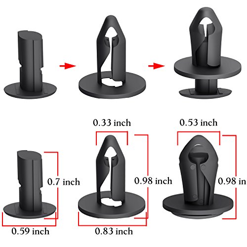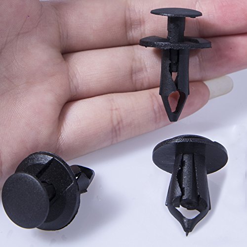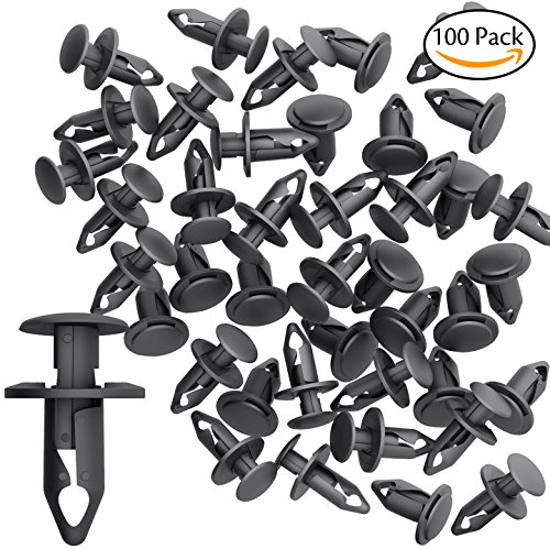 About Product - These bumper clips are made of high-quality black nylon material, anti-wear and anti-corrosion, would not break or crack easily during use. - Head Diameter: 20mm/ 0.8 inches; Stem Length: 22.8mm/0.9 inches; Fits Into: 8mm /0.3 inches hole. - Push in type, rivet post pressure expands legs for fast and tight fastening. easy to fasten Bumper Fender Flare and Mud Flap. - These universal push-type fastener clips will fit on most of auto parts with 8mm hole, hold your parts very tightly. - Widely used for door trim, radiator shield yoke, fender, bumper, side skirt, grille, engine cover and splash shield retainers rivet clips for exact replacement of worn, old, and broken retainers. - There are 100 pcs car fender clips for better replacement for original bumper and fender clips.