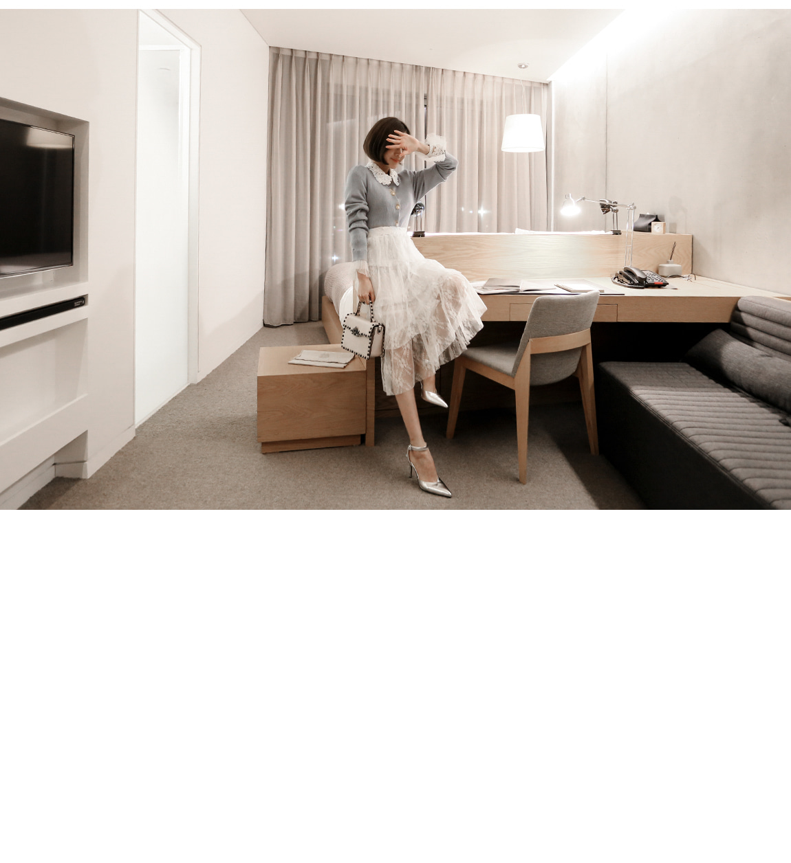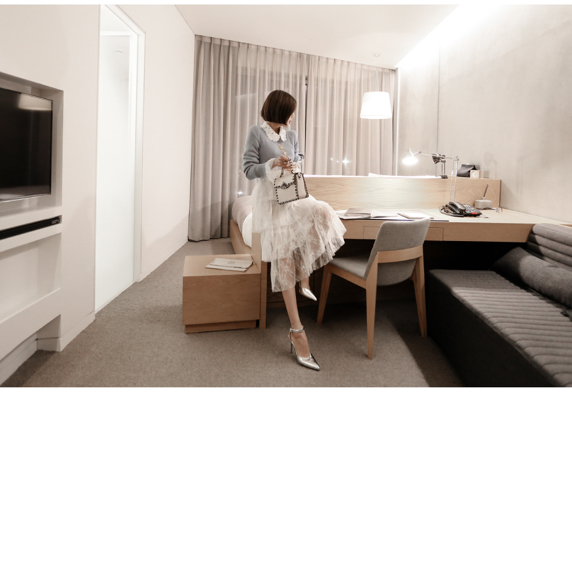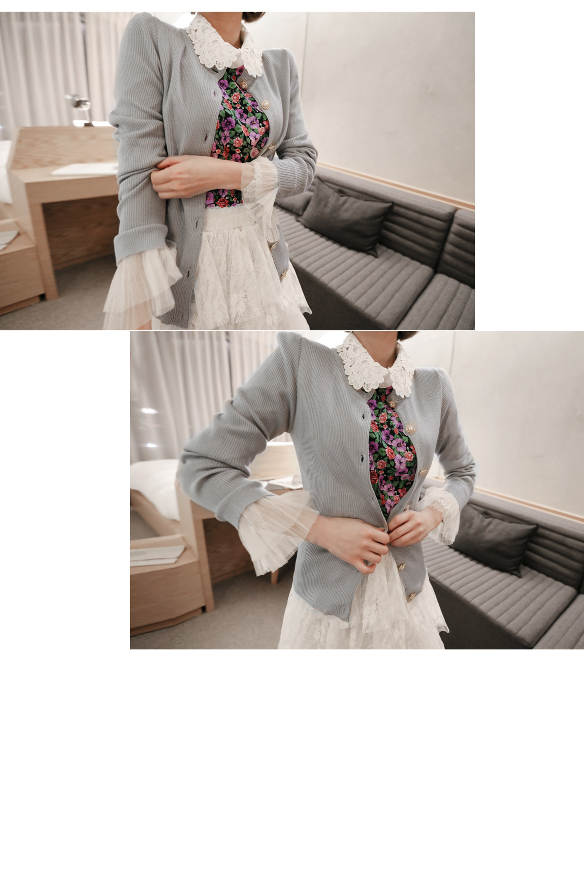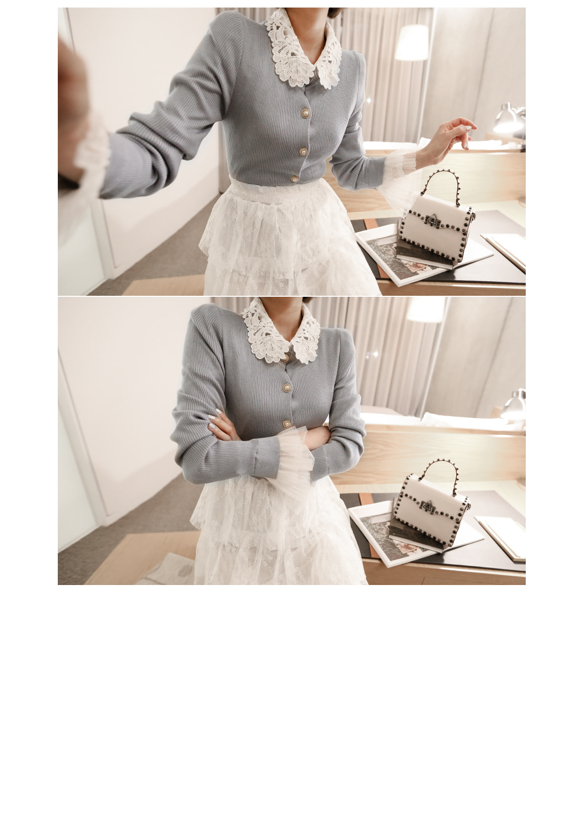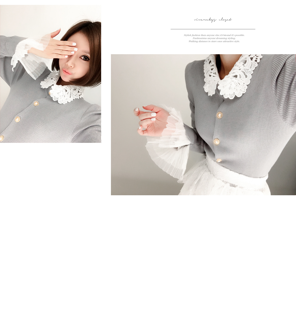 손목의 레이스 디자인으로 페미닌한 포인트를 주었어요