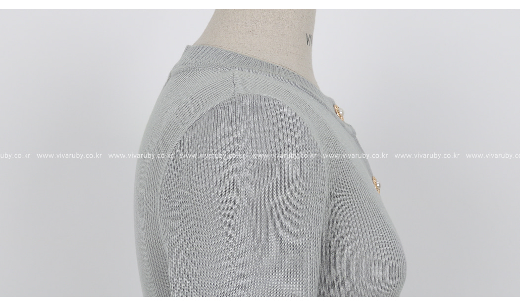 フロント中央の真珠ボタン、きめ細かさでクオリティを高め、