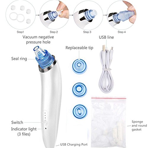 - 【What You will Get】Gasili High Quality Electric Blackhead Vacuum Suction Remover x 1, Replaceable Suction Heads x 4, Sponge Mat x 4, Blackup Ring x 4, Micro USB Charging Cable x 1, User Manual x 1, 24 hours friendly service, 30 days no hassle money refund, 18 months warranty. Any question, please give us a chance to give you a satisfied solution
