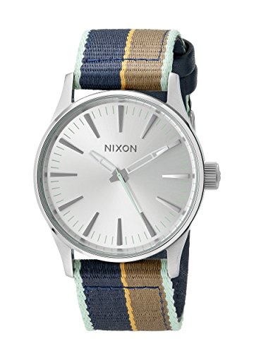 -. Binding : Watch -. Brand : NIXON -. Color : Silver/Navy Stripe -. Department : mens -. EAN : 0882902789296 -. Feature : The Nixon Sentry 38 Nylon features swiss made quartz three hand movement, a stainless steel case with hardened mineral crystal, fixed stainless steel bezel, double gasket stainless steel crown, stainless steel screw down caseback and sP.R.Ing pin lugs / This watch has a custom canvas band with solid stainless steel buckle closure / Analog-quartz Movement / Case Diameter: 38mm / Water Resistant To 330 Feet -. IsAdultProduct : 0 -. Label : Nixon Inc. -. Manufacturer : Nixon Inc. -. Model : A4262083 -. MPN : A4262083 -. NumberOfItems : 1 -. PackageQuantity : 1 -. PartNumber : A4262083 -. ProductGroup : Watch -. ProductTypeName : WATCH -. Publisher : Nixon Inc. -. Size : One Size -. Studio : Nixon Inc. -. Title : Nixon Men's A4262083 Sentry 38 Nylon Analog Display Analog Quartz Watch -. UPC : 882902789296