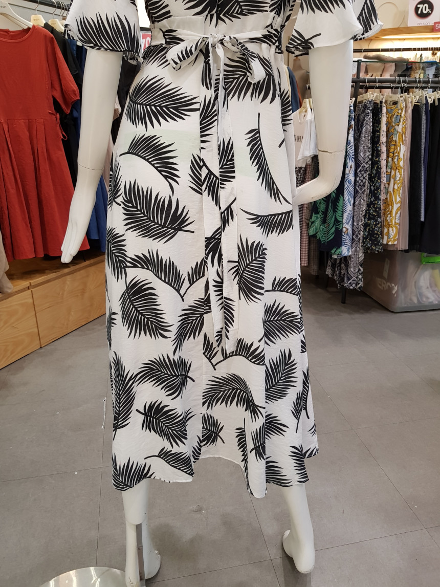 나뭇잎 무늬 롱 원피스예요귀여운 소매 프릴과 허리끈으로 허리선을 날씬하게 잡아 입으실 수 있어요뒷지퍼 처리로 깔끔하고 세련된 느낌에 원피스예요깊은 V넥으로 똑딱이 를 활용하시면 편안하게 착용하실 수 있어요총장 120cm 가슴 단면 44cm 오차 있어요모니터 해상도에 따라 색상 차이 있어요
