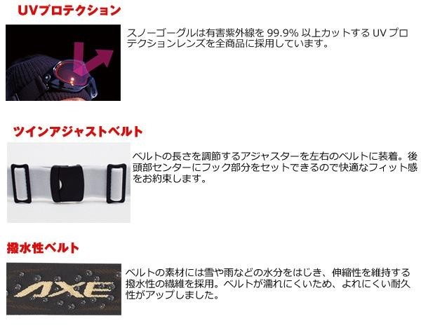 | スキーやスノーボードなど、冬のスポーツに最適でかわいいゴーグルです。お子様の目を見て、どんな時でも表情を読み取ることができるレンズカラーを採用。レンズは二重構造で、外気とゴーグル内の温度差を小さくした曇りにくいダブルレンズを使用しております。 |