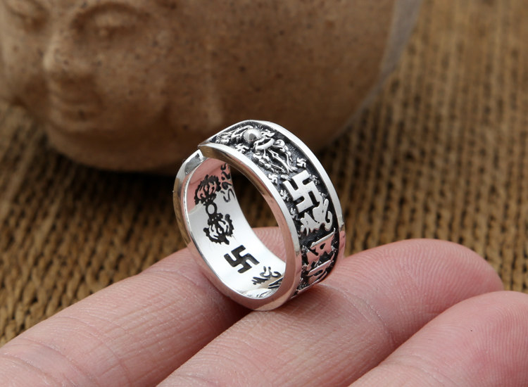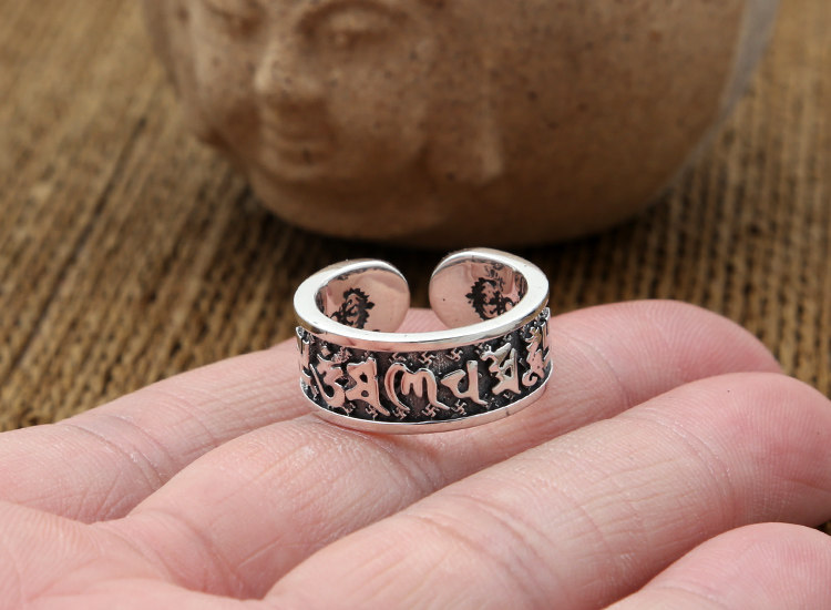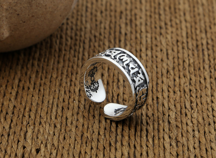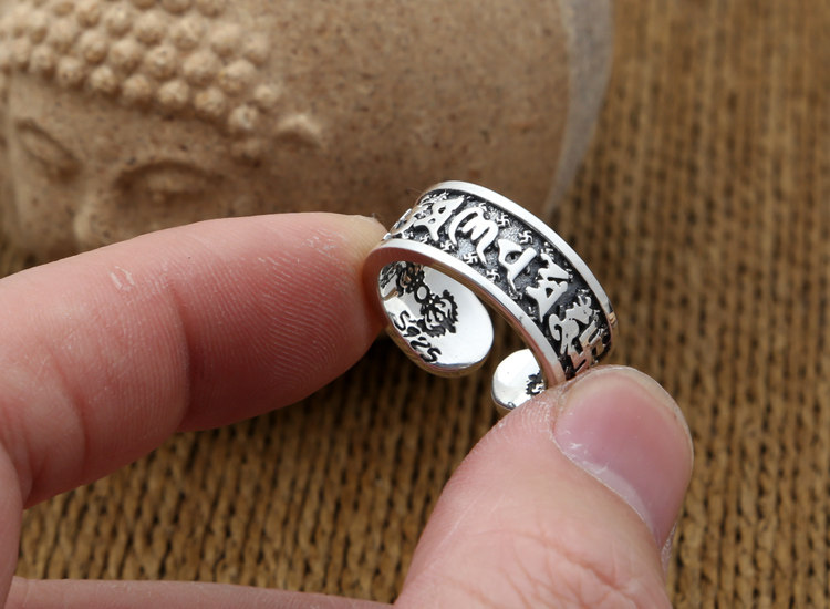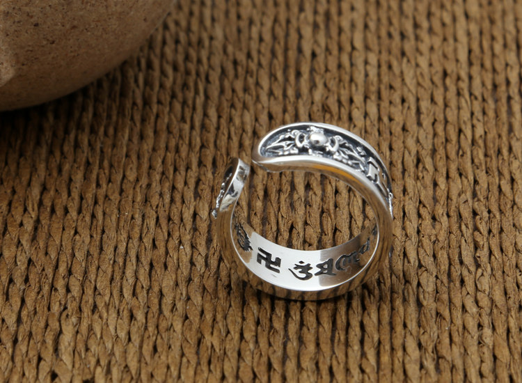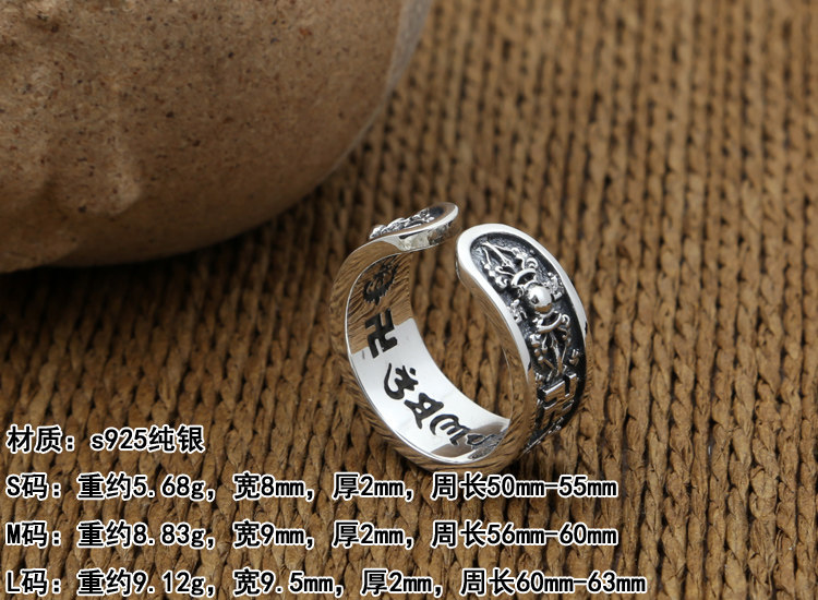 富贵鹿原创s925银金刚杵六字真言开口戒指男女款指环复古泰银情侣