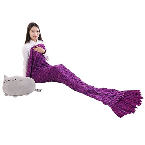 - ★ lIKE A SLEEPING BAG: Adorable and beautiful mermaid tail blanket, could fit your feet go in fins, warm your feet