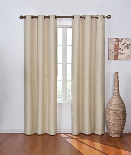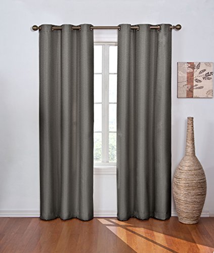 Find the perfect combination of fashion and function with the Eclipse Elliot blackout curtains. Eclipse offers a complete line of functional curtains that provide privacy, manage light, reduce noise, and help with energy savings, without sacrificing the latest looks in window fashion. These beautiful panels feature a textured floral print. A layer of thermal foam backing provides light blocking, noise reducing, and energy Saving benefits. Each panel measures 42 inches wide in your choice of 63, 84, or 95 inches long. 1.65 inch oil-rubbed bronze grommets are recommended with up to a 1 inch rod for maximum movement. Curtain rod sold separately. 100percent polyester. Machine washable.Feature