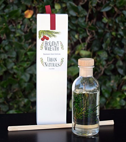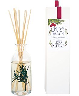 Urban Naturals Cranberry & Pine Scented Oil Reed incense Diffuser Set with Real Pine Needles! Holiday Wreath by Urb