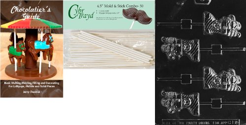 Cybrtrayd 'Stuffed Stocking Pop' Christmas Chocolate Candy Mold with 50 4.5-Inch Lollipop Sticks and Chocolatier's Guide
