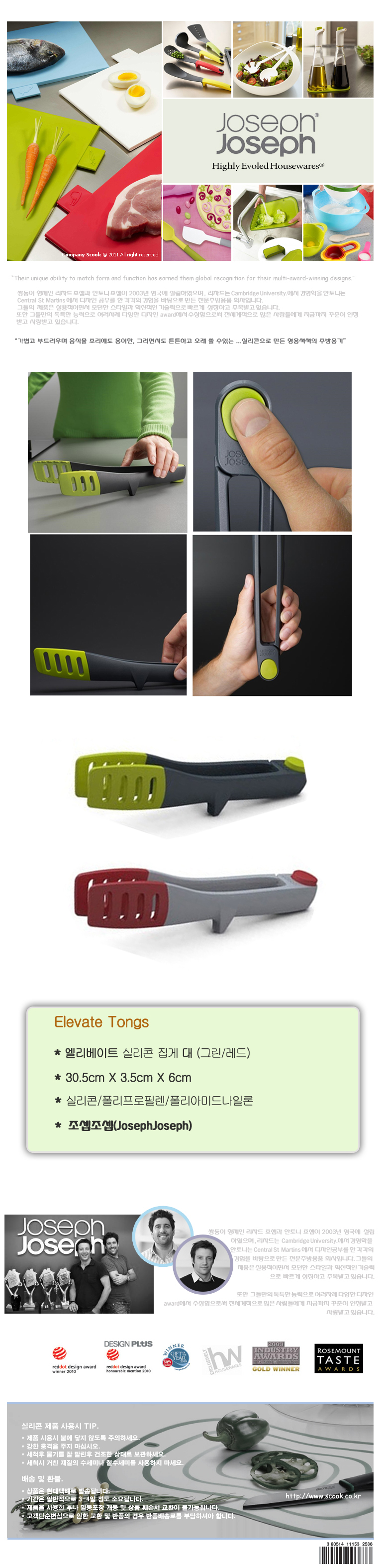 - 품명 및 모델명[죠셉죠셉] 엘리베이트 실리콘집게 레드(대)