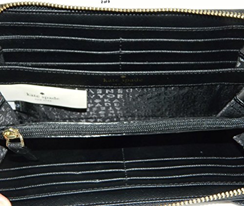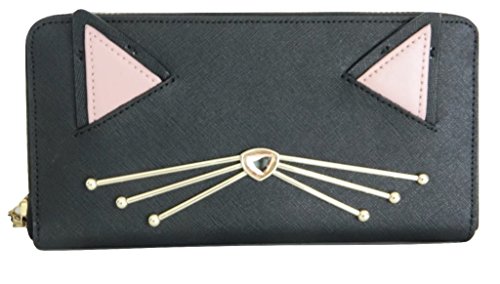 Kate Spade Neda Jazz Things Up Black Leather Continental Wallet with kiyy cat details.