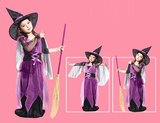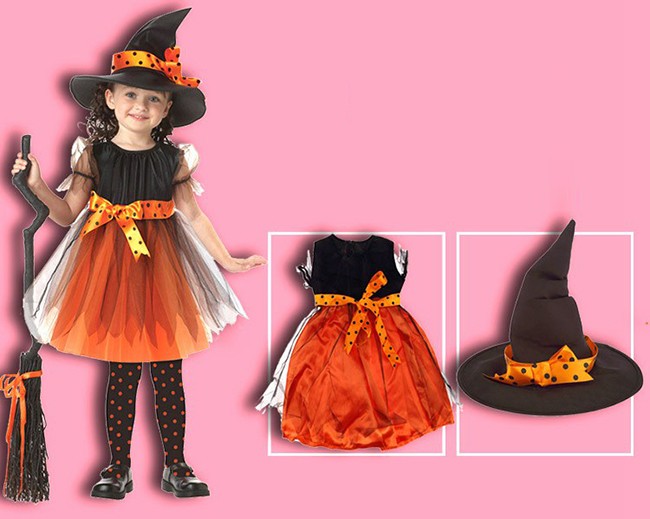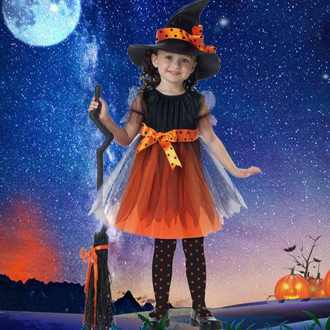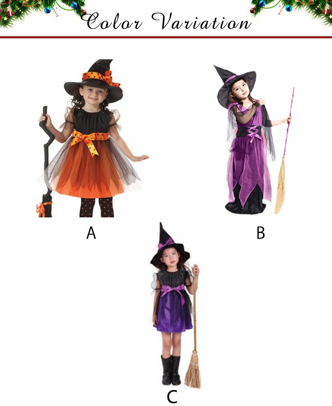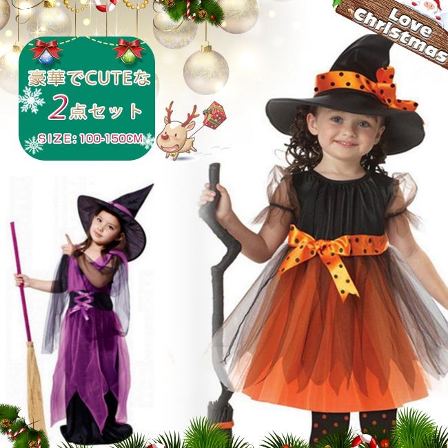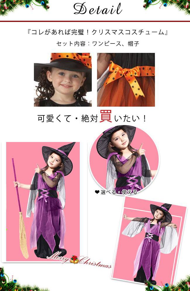 クリスマス コスプレ 子供 女の子 魔女 ウィッチ 魔法使い キッズ ジュニア 子ども コスチューム 衣装 かわいい 仮装 変装 服 パープル オレンジ ロング ショート 2タイプ ワンピース ハット セットアップ パーティーグッズ イベント用品 xmas Christmas cos