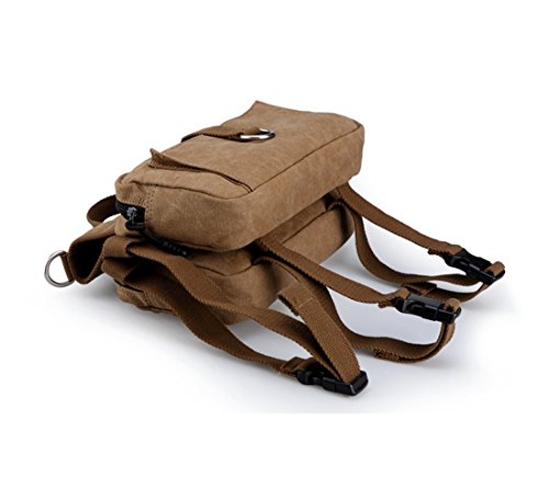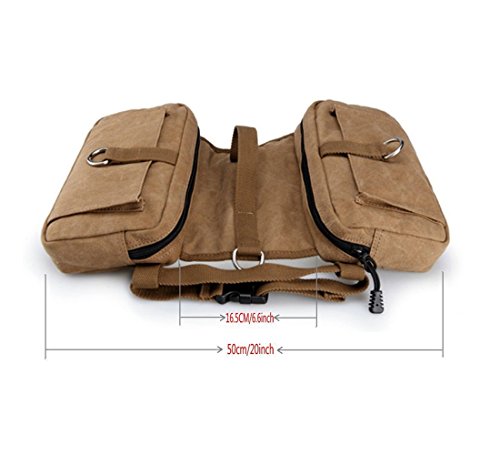 -. Feature : 1.HIGH DENSITY SOFT MATERIALS: High density, durable, soft 100% cotton canvas, NO any smell (not odorous nylon), very comfortable and safe for your pets to wear, very easy to wash, hand/machine wash acceptable. / 2.MULTIPURPOSE USE DESIGN: The dog backpack can be use for outdoor travelling, camping, hiking, walking, hunting, running with your dog, to carry food, newspaper, water or some small EDC items when outside. / 3.MULTIPLE BAGS AND D-RINGS: Theare are 4 pockets in tatol, 2 main zipper bags with 2 side bags, 4pcs D-ring buclkes, you can hang many small things like dog leashes, poop bags and dispenser, pet toys, collapsible dog bowls, larger bags can hold bottled water, food, pets treats, snacks, even phones, key, MP3. / 4.KINDLY NOTES FOR YOU: Please measure the chest circumference before buying, not fit for puppies, very small dogs. / 5. (L.10.6inch x W.2.7inch x H.6.7inch)