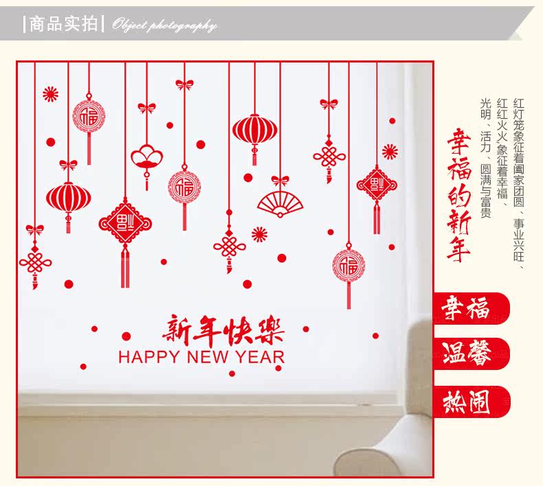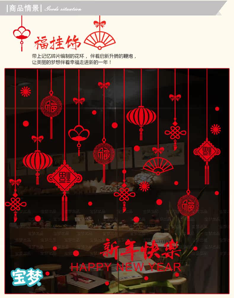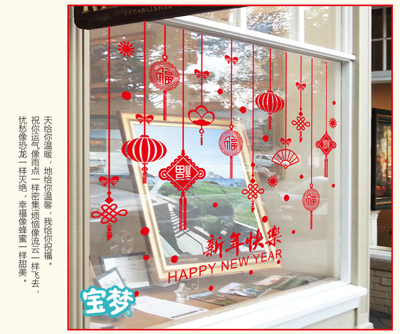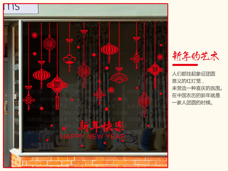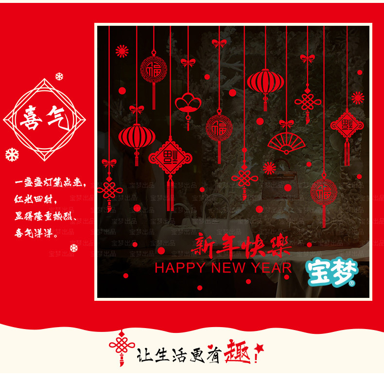 春节墙贴纸狗年过年装饰店铺橱窗玻璃贴门贴新年灯笼福字贴画