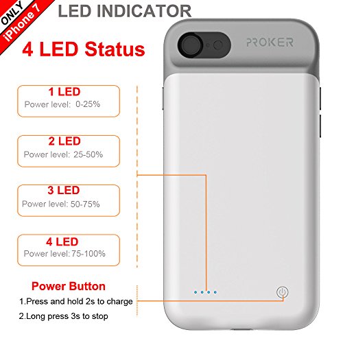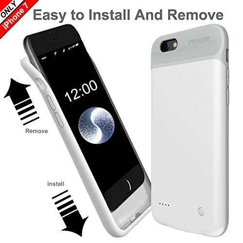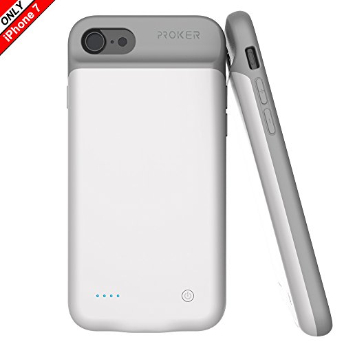 iPhone 7 Battery Case,Proker Ultra Slim Extended Charging Case With High Capacity 3000 mAh for iPhone 7- 4.7 inch Soft Rubber Hinge Design&Build-in Magnet (2nd-White). Power your iphone and high-impact protected