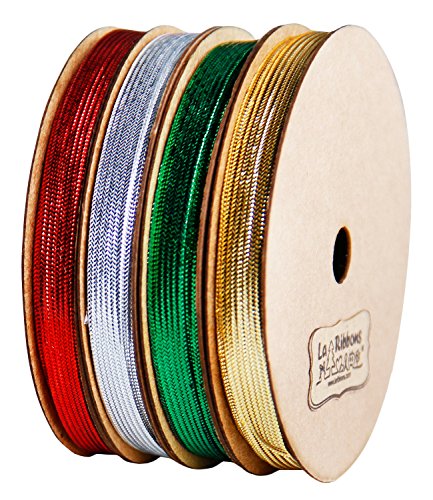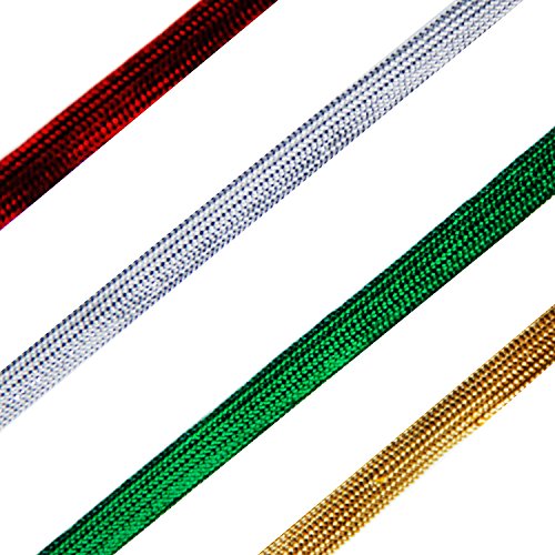 Laribbons 1/4 inch Wide Flat Braid Flat Tape Trim for Craft – 10 Yard 4 Color(Green/Gold/Silver/Red)