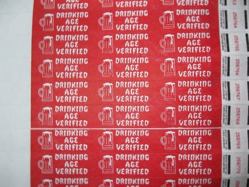 -. Feature : 50 Red Drinking Age Verified Consecutively Numbered / Tyvek Wristbands 3/4 Inch / waterproof, durable, great one time use