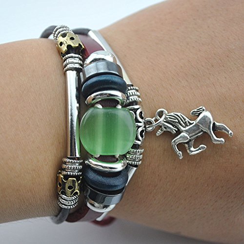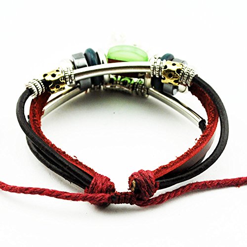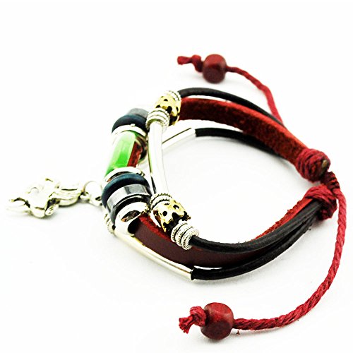 - Title : Real Spark Red Leather Beads Horse Pendant Bracelet Metal Tube Handmade Wrap Bracelet
