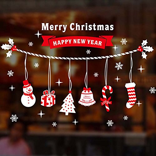 Christmas Windows Stickers Removable Vinyl DIY Wall /Glass Stickers, Door Mural Decal Sticker for Showcase (White)