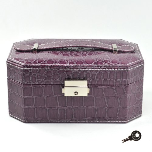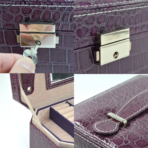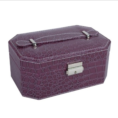 - Title : KLOUD City @ Purple PU leather octangle 2 layer jewelry ring necklace earring box storage case with a mirror and handle (purple)