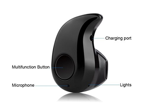 SolidPin Universal Invisible Wireless Bluetooth Stereo Earbud Earphone Headset Headphone with Microphone for iPhone, iPad, Samsung Galaxy Note Edge, LG, Motorola, Android, Hands free Calling - Black