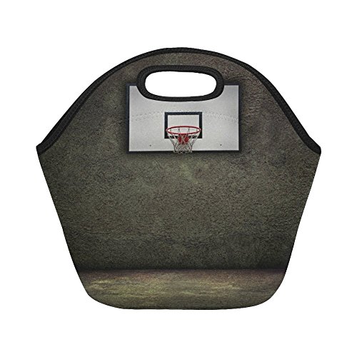 InterestPrint Neoprene Lunch Bag Unique Design Basketball hoop on empty outdoor court Best Lunch Box/Lunch Tote Bags Keeps Lunch Fresh for Women, Adults, Kids
