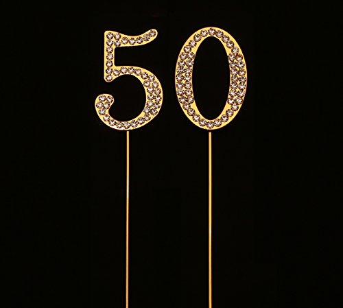 - MULTIPLE USES AND A KEEPSAKE: Use this as a cake topper for 50th birthday or anniversary, a centerpiece, part of a floral arrangement or place setting. Remove the metal prongs after the party and save this as a keepsake. This is a must have bling cake topper for your birthday or anniversary party decoration.