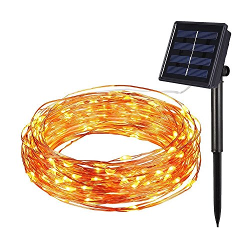 Solar String Lights, Outdoor Waterproof Starry String Fairy Lights, 100 LED/8 Modes Copper Wire Lights for Gardens, Home, Halloween, Christmas, Party Decorative Ornaments (Warm White)