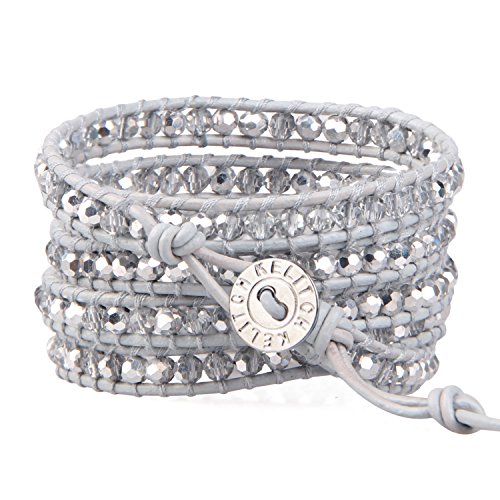 -. Title : KELITCH Gray Crystal Beaded Genuine Leather 5 Wrap Bracelets Handmade New Jewelry