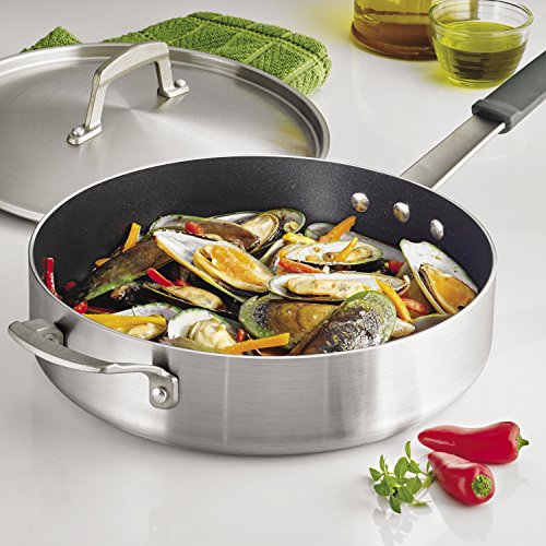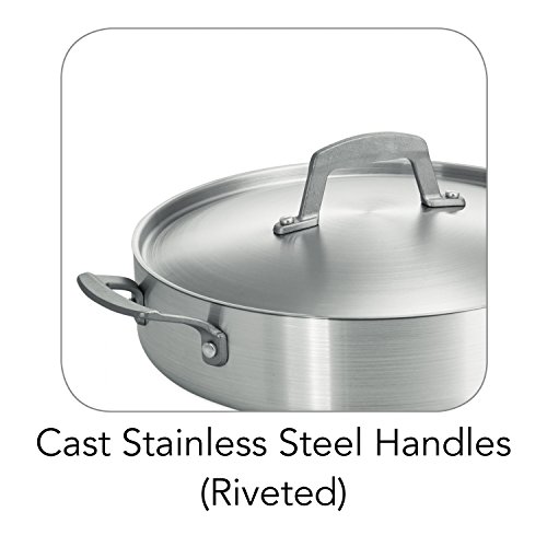 Tramontina's Pro-Line 5.5 Qt. Nonstick Deep Saute Pan & Lid is designed and manufactured to withstand the rigors of a professional kitchen, but easily adapt to home and non-commercial use. Ideal for frying, browning, sauteing, or searing your favorite recipes, the saute pan’s commercial-grade, heavy-gauge aluminum construction distributes heat quickly and evenly, while the PFOA-Free, Eclipse reinforced nonstick interior allows food to easily release from the pan - providing effortless cooking and cleanup. The cast stainless steel handles are riveted for additional support, while the long handle features a removable, silicone, soft-grip handle for versatility and maneuverability. The deep saute pan is NSF certified, compatible with gas, electric and ceramic glass cooktops, can be used in the oven up to 400 F (204 C), and is proudly made in USA with imported components.Feature