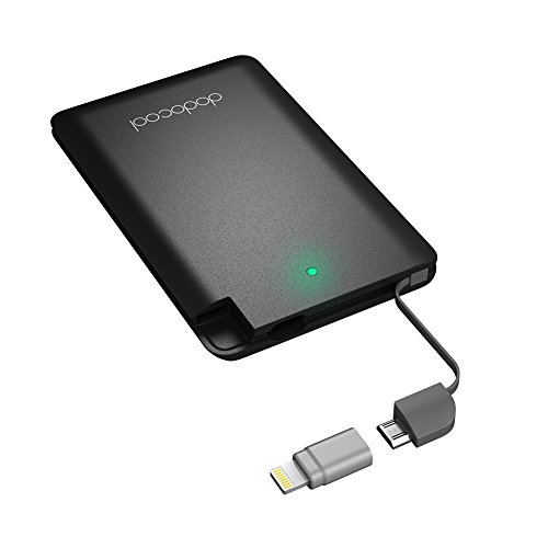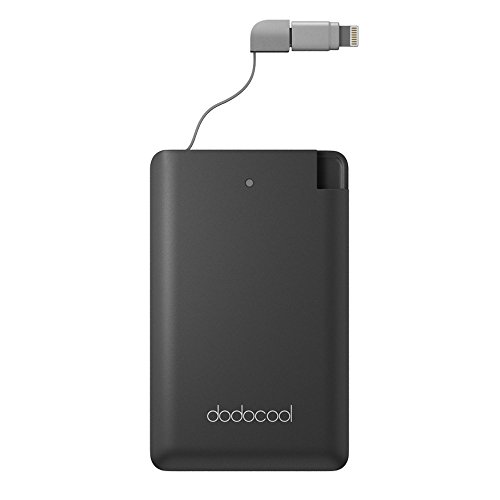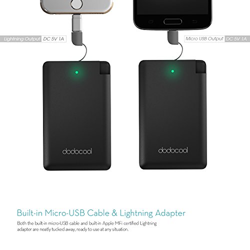 dodocool Mini Power Bank 2500mAh Slim Portable Phone Charger External Battery with Built-in Micro USB Cable and [MFI Certified] Lightning Adapter
