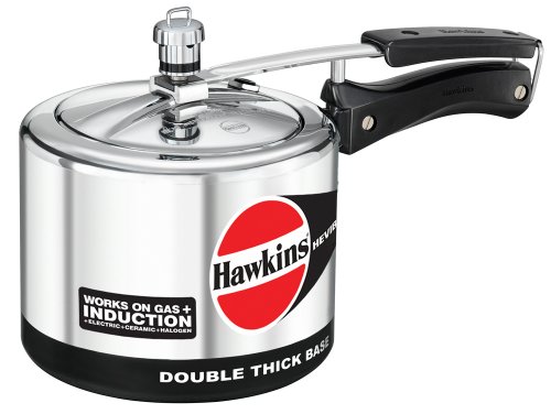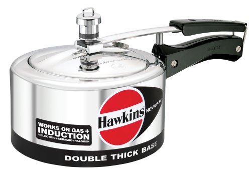 The Hawkins IH30 Hevibase 3 Liters Pressure Cooker is more efficient and absorbs heat effectively. Made of durable aluminum material it is sturdy and is compatible with induction stoves. It has a capacity of 3 liters and is suitable to cook for 3-4 persons. The double-thick, heavy gauge base is ideal for light frying before pressure cooking. The base stays flat and never bulges. The diameter of the base is 144mm and the thickness is 6.35mm. In addition, the handles are strong and ensure a convenient grip. Buy the Hawkins IH30 Hevibase 3 Liters Pressure Cooker and cook healthy food!.Feature