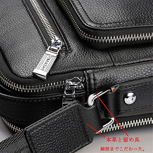 -. Feature : メイン素材:牛革  表地:本革  裏地:ポリエステル  カラー:ブラック /ネイビー/ブラウン 重量:約720g / サイズ:タテ25cm、ヨコ20cm、マチ8cm(測り方により1-3cmの違いがある場合はございますので、ご確認の上お買い求めください。) / 留め具の種類: ファスナー  ショルダーベルト長さ:約84-140cm調節可能、幅約4cm 手ざわり: 柔 □■□□□ 硬 (※表記は目安です)、柔らかく、優しい手ざわりの牛革ショルダーバッグです。 / 収納:ジッパーポケットx5、小物用ポケットx3  財布、手帳、iPad miniなどが楽々入り、見た目はスッキリスマートに。 / 柔らかな肌触りで、とても丈夫な牛革をバッグ全体に使用しております。牛革は使い込む程が艶増し、味わい深い革になっていきます。 ちょうど良い大きさで必要なものだけを持ち運び、休日の相棒にピッタリのバッグに仕上がっています。 注意:牛革製品のため、開封の時多少の匂いがございます。数日置いたら匂いが消えます。あらかじめご承知ください。